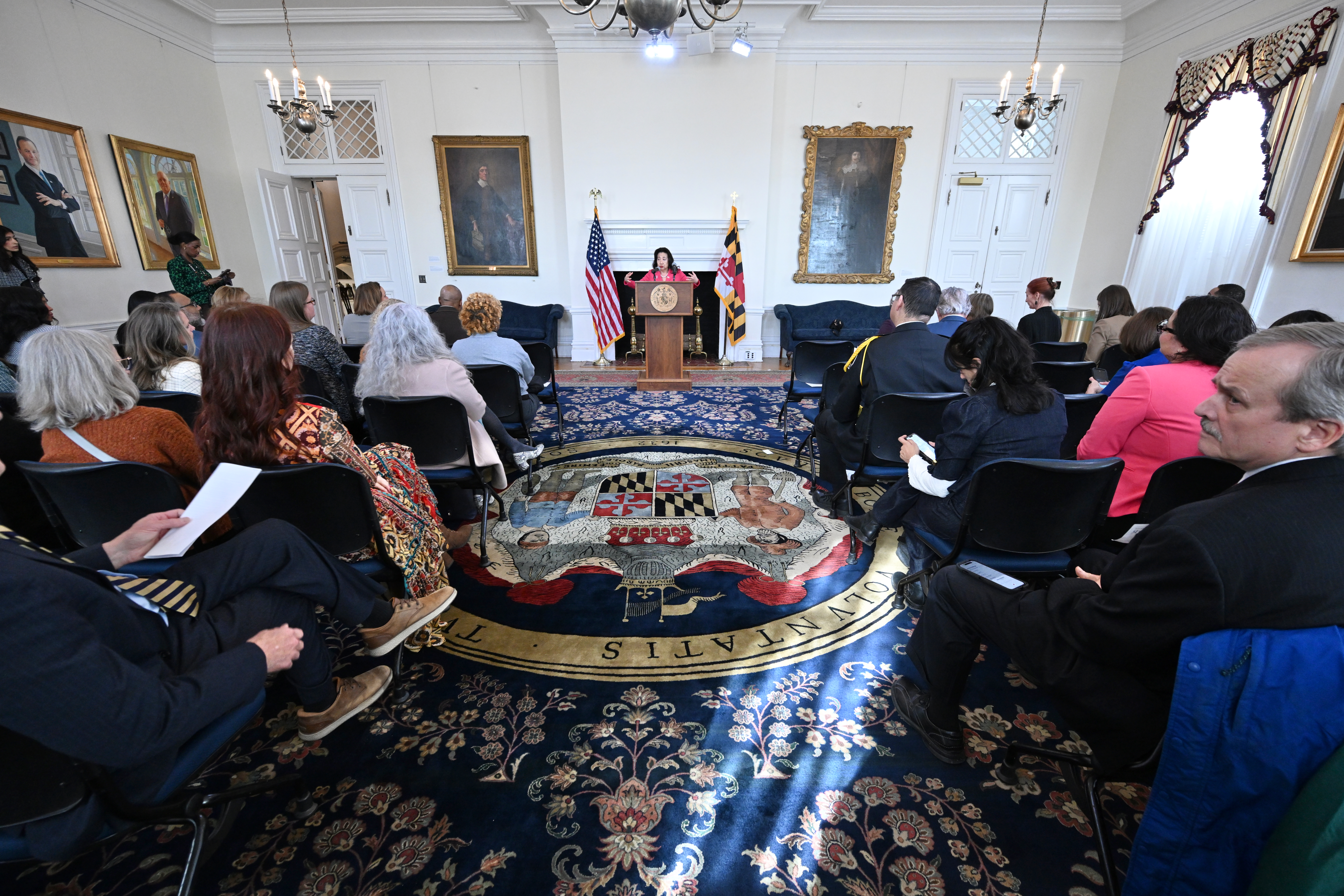 Pictured: SAFE Center Founder and CEO Susan Esserman speaks at event at the Maryland State House in recognition of National Human Trafficking Prevention Month.Photo Credit: Joe Andrucyk, Executive Office of the Governor Wes Moore.